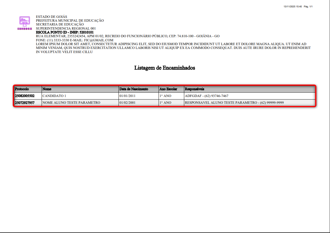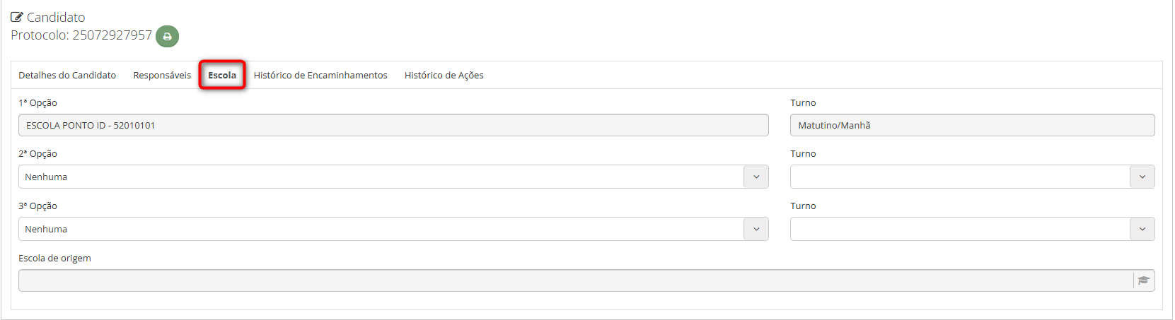 Escola: Onde são apresentadas as escolas selecionadas pelo candidato.