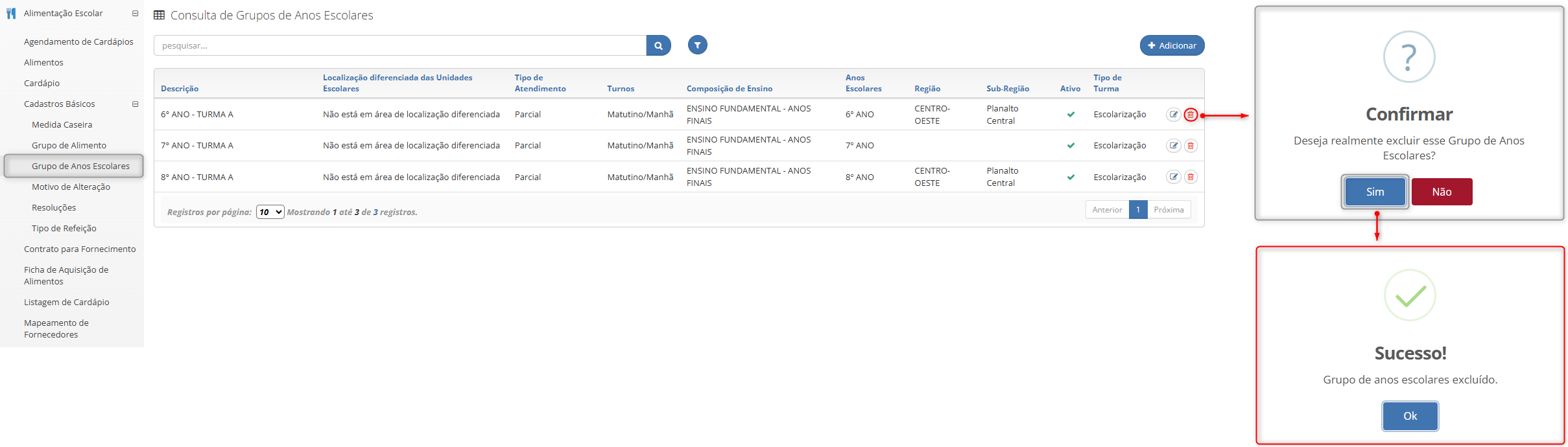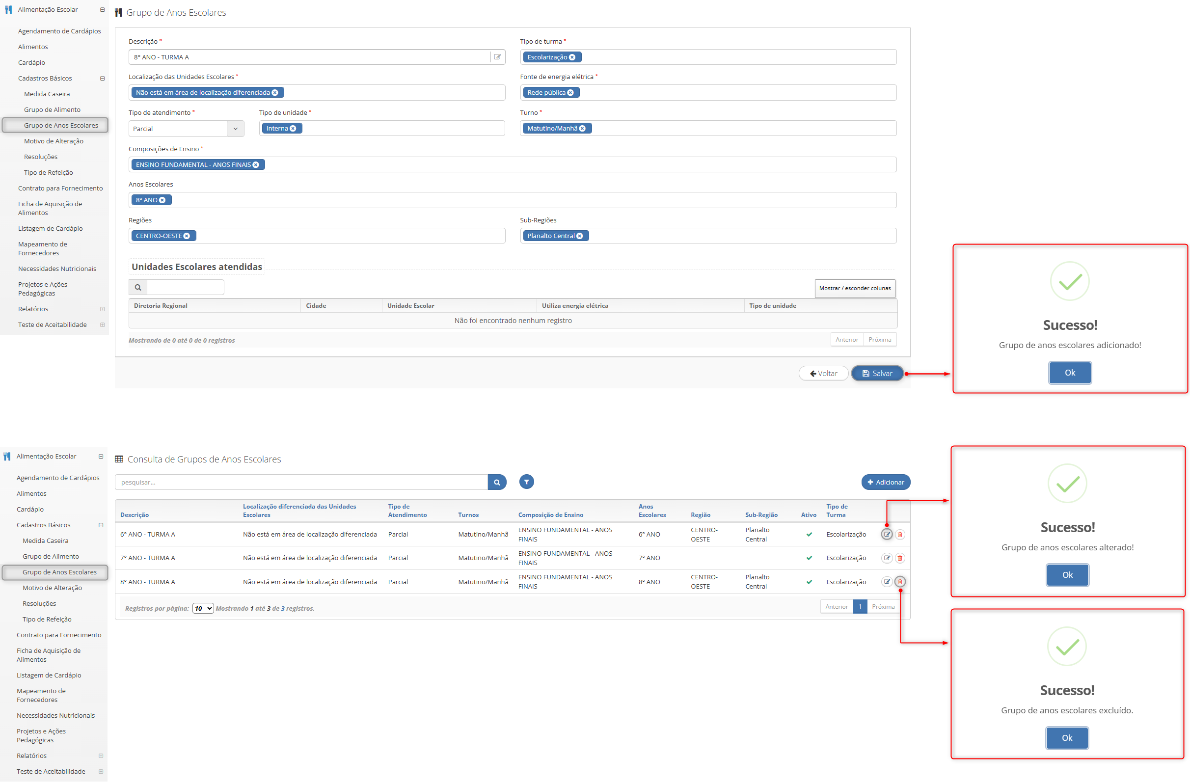 Pop-ups de validação no cadastro de grupo de anos escolares, da alimentação escolar, passam a ser exibidos corretamente nas ações de adicionar, editar ou excluir, conforme a operação realizada.